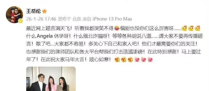 两人经常陪女儿一起吃饭、旅行、看演唱会……这样的相处模式,很体面了。这次,王岳伦请求大家不要再传播谣言,但他说了这么一句话,“散了吧……大家都不容易,多关心下自己和家人吧,他们才最需要你们的关注!”这就有点“阴阳”,搞不清重点了……你应该重点抨击“造谣”的人,怎么教育起网友来了呢?网友关注八卦还是关注家人,还需要拟定一个日程表么?你们全家风光时,需要网友的关注和流量时,怎么不让大家“散了”呢?……